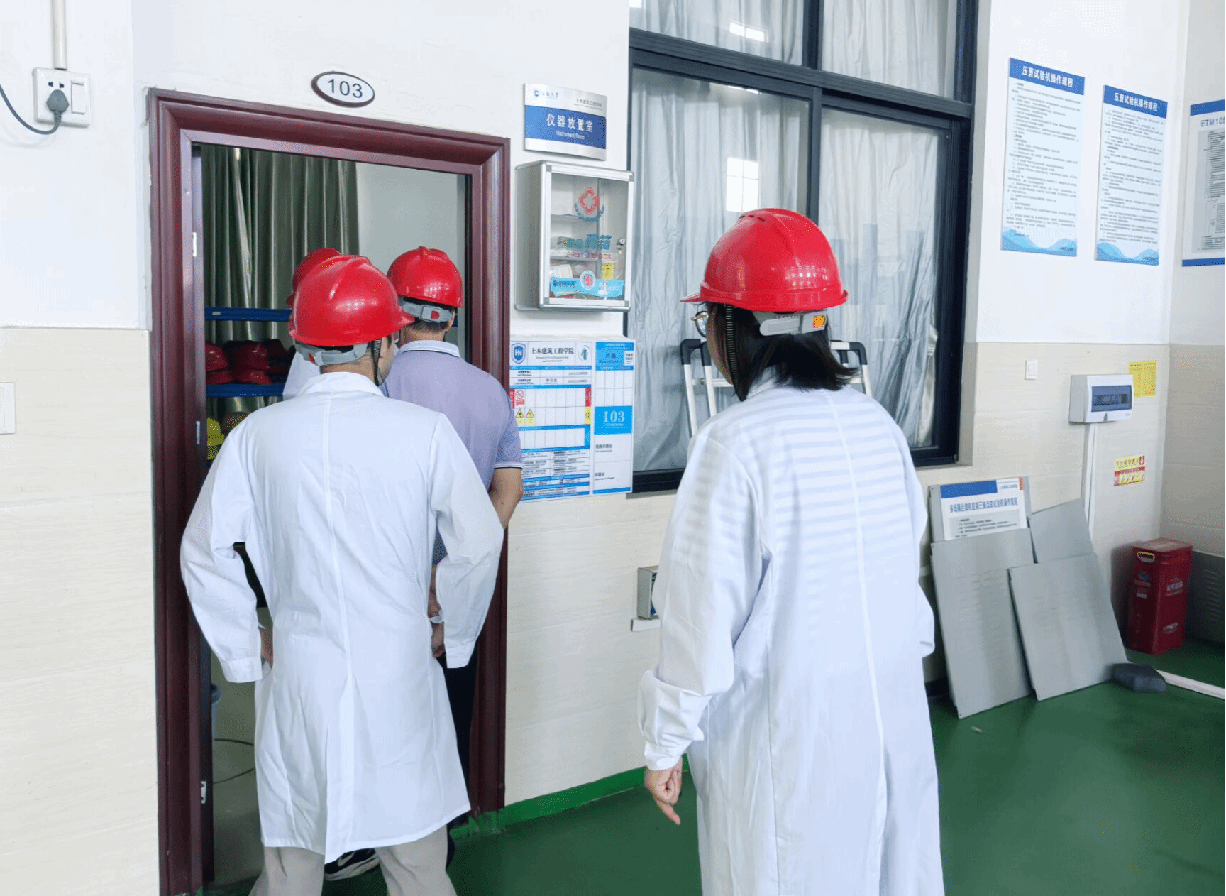 检查小组首先来到了结构实验室一楼大厅