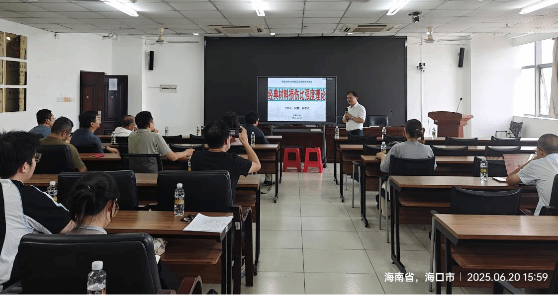 2025年6月20日,热带海洋土木建筑讲坛第十七讲在研发楼510报告厅顺利举行。本次讲坛邀请了中南大学丁发兴教授和浙江大学梅国雄教授分别做了题为《材料损伤比强度理论及结构抗震防火安全》和《研究生培养的若干思考》的报告。
