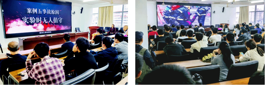 培训伊始,全体参会师生共同观看了由best365实验室与设备管理处精心制作的安全警示教育片。该片由best365足球官网自主拍摄,内容紧密结合高校实验室的真实环境与潜在风险,通过一系列典型案例,直观深刻地剖析了实验室中易发的火灾、触电、化学品泄漏等事故的成因与后果,为在场师生敲响了安全警钟,让大家深刻认识到“安全无小事,责任大于天”。
