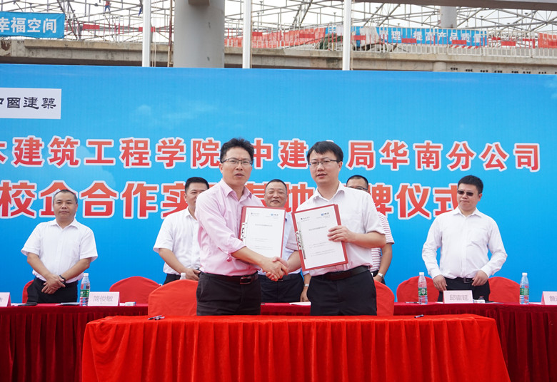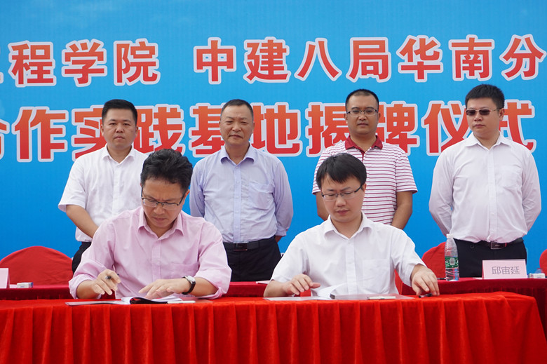 随后,best365足球官网学院副院长邱宙廷代表学院与中国建筑第八工程有限公司华南分公司人力资源部经理宫红亮进行签约。best365足球官网学院党委书记卢江海代表学院向中国建筑第八工程有限公司华南分公司授予“校企合作实践基地”牌匾。