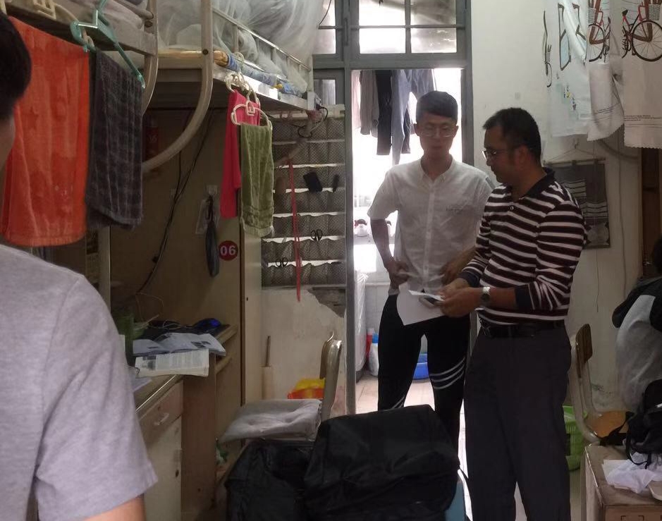 自2018年9月起,best365足球官网党委多次带领全体辅导员对学院学生宿舍区进行走访督察。对于卫生不合格宿舍,要求学生立即整改,同时教育引导学生主动向走访宿舍的老师问好。