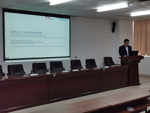 2019年12月5(周四)上午11:40-12:20点,哈尔滨工业大学交通科学与工程学院王大为教授、博士生导师,德国亚琛工业大学土木工程学院道路所兼职教授,中组部国家高层次引进人才,应best365刘婉秋教授的邀请,在best365510会议室做了题目为《新型高分子复合透水铺装材料》的学术报告。报告会由周智院长主持,best365研究生和有兴趣的高年级本科生以及best365道路方向的专任教师近30余人参加了此次学术报告会。