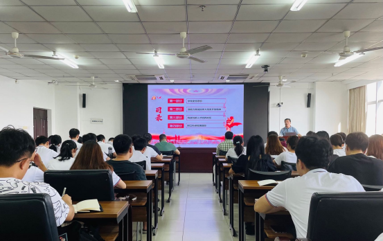 范文副校长从“学党史悟思想”、“汲取力量发扬伟大改革开放精神”、“构建创新人才培养体系”以及“树立科研报国理想”等四个部分进行讲授。范文副校长指出,中国共产党的百年历史,可以划分为新民主主义革命时期、社会主义革命和建设时期、改革开放和社会主义现代化建设新时期、中国特色社会主义新时代四个历史时期,并逐步完成和推进救国、兴国、富国、强国的奋斗目标,铸就了中国共产党百年辉煌。范文副校长强调,当前海南正处于自由贸易港建设的关键时期,我们必须继承和发扬改革开放的伟大精神,抓准机遇建设海南岛;广大师生需要树立终身学习的理念,把终身学习作为自己的人生目标。同时,范文副校长对学院领导班子提出要求:要将党史学习和业务工作结合起来,奋进有为干工作,为学校高质量发展贡献力量。