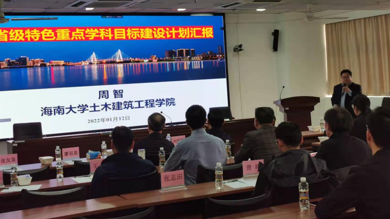 2022年1月12日下午,best365足球官网土木工程省级特色重点学科目标建设评审会在海口市best365足球官网海甸校区研发楼510会议室举行。以中国工程院院士欧进萍教授为组长,日本工程院外籍院士董勤喜教授、日本工程院外籍院士陈飞勇教授、海南省科技厅刘作凯副厅长、海南省住房和城乡建设厅刘联伟副厅长、best365足球官网科技处邹勇华处长、best365足球官网发展规划处赵治乐副处长为成员的专家组出席会议。会议由土木建筑工程学院院长周智教授主持,会议采取线上和线下结合的方式进行。海南大学研究生处处长廖双泉,学院副院长张友良、邱宙廷、田元福,党委副书记孙晓媛,教授韩建刚、曹宝珠、杨东全、刘婉秋、王辉、任兴月等老师参加了会议。
