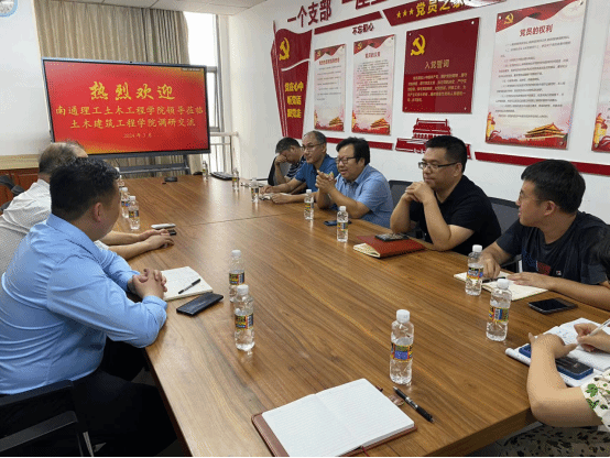 南通理工学院土木工程学院刘院长对学院的热情接待表示感谢,他简要介绍了南通理工学院和土木工程学院的基本情况,并说明了本次调研交流的主要目的,期待双方加强沟通交流,希望在人才联合培养、申报校外导师等方面开展合作。