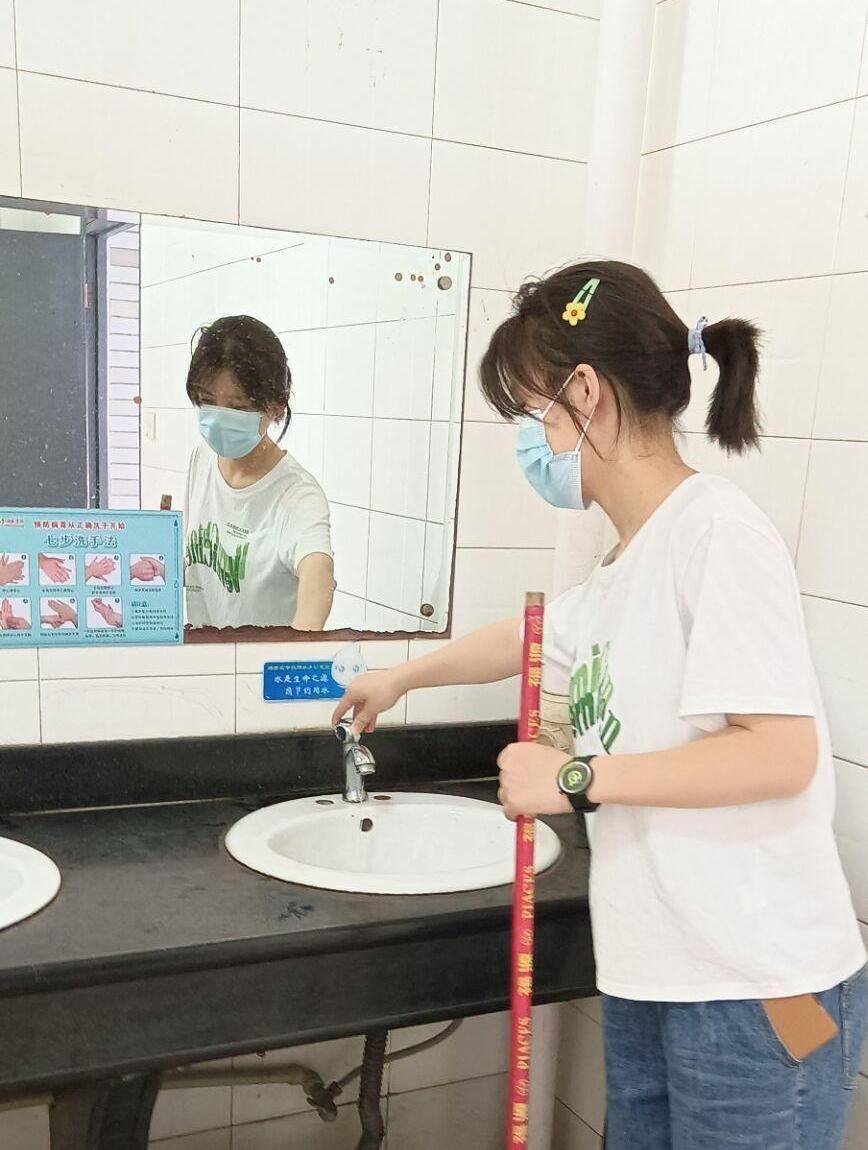 在活动的过程中,今年会青年细致地关注到了每一个角落,包括但不限于清理卫生、节水节电等等一些举措,节省了不必要的资源浪费。活动中极为显眼的一幕,21计科2班志愿者朱枫琳,在看到走廊的地面上有污痕的时候,连忙找到一把拖把,在拖完那一些污渍后,她并没有停下来,而是用干抹布将水渍擦拭干净。