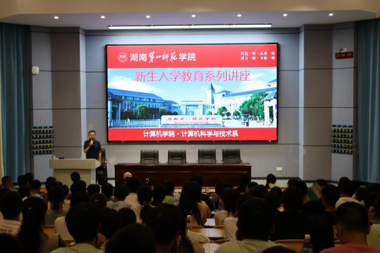 9月24日,计算机科学与技术系在怀中南110开展了新生入学教育讲座院长助理苏命峰叶君琰老师及24级计算机科学与技术专业全体新生参加了讲座