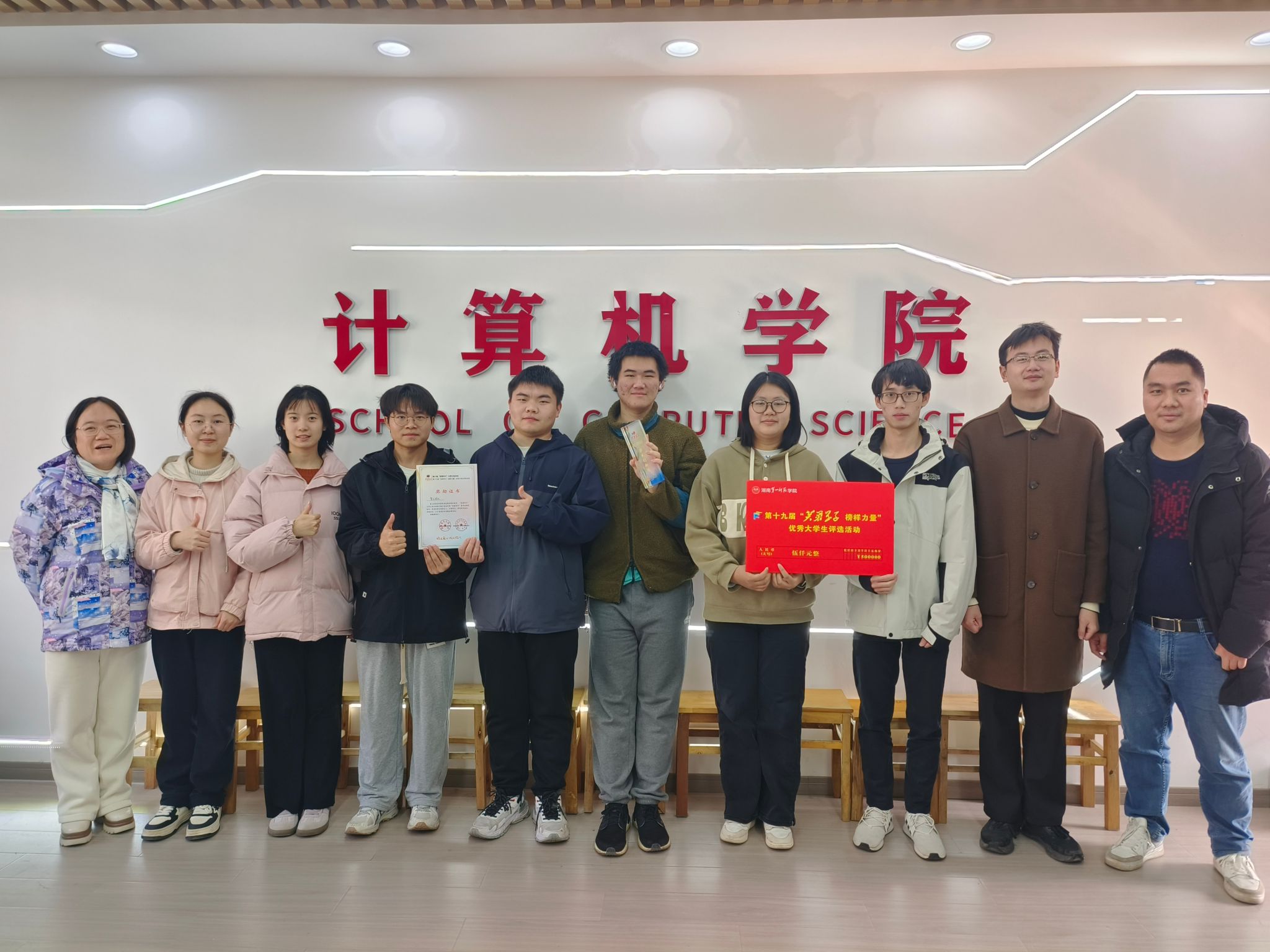 今年会智汇团队凭借在专业竞赛中的突出表现,荣获校第十九届“芙蓉学子·榜样力量”学术创新奖。该奖项充分肯定了团队成员在学术创新与实践探索中的卓越成绩。智汇团队由跨年级的8名成员组成,包括21级计科3班张任也,22级计科4班覃苏苏、夏月、熊涛、曾雨、梁欣如,22级计科5班蔡宇,以及23级计科1班刘坤浩。团队在唐德燕、周聪两位教师的专业指导下,通过持续协作与创新突破,在学科竞赛领域取得了显著成效。