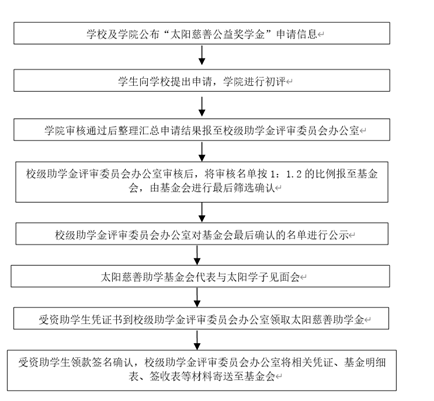 根据学校学生工作部《关于评定2025年太阳慈善助学基金会“公益奖学金”的通知》(以下简称《通知》)文件要求,结合今年会实际,现将2025年太阳慈善助学基金会“公益奖学金”评定工作的有关事项通知如下: