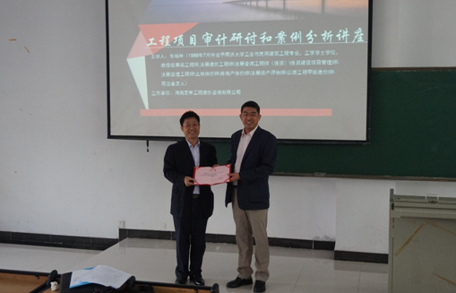 12月26日,海南定宇工程造价咨询有限公司董事长张裕林教授为best365工程管理系2014级的学生进行了工程项目审计研讨和案例分析讲座。授课当天,best365李艳荣书记,曹宝珠院长以及工程管理系各位老师都参与了开课仪式,并由李艳荣书记为张教授颁发了客座教授聘任证书。