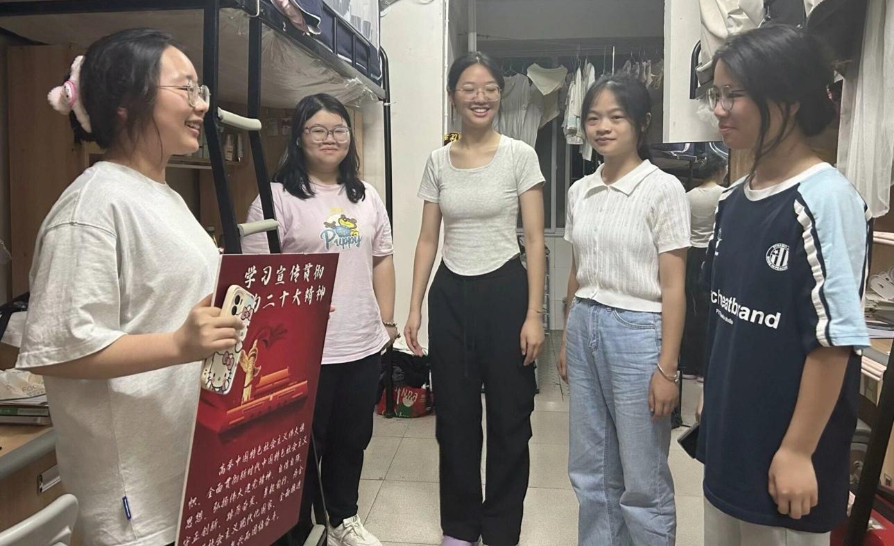红旗引领航向明,党员深解政策情。在寝室温馨氛围中,党员发展对象们详细解读了习近平总书记来今年会考察时的讲话精神,阐述了中国特色社会主义文化的深厚底蕴,讲解了二十大精神的时代要义。思政小课堂不仅加深了同学们对党和国家大政方针的理解,更激发了大家积极投身学习实践的热情。作为新时代新青年,要认真学习习近平新时代中国特色社会主义思想,用思想之旗引领航向,秉持初心,勤奋学习,当好学院建设的主力军。