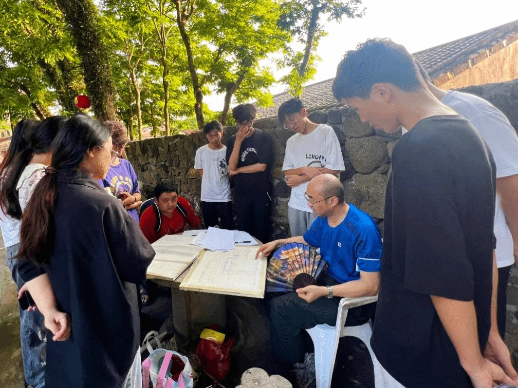 各位教师的指导下,学生利用测仪、卷尺等工具准确获取建筑物的位置、尺寸等信息,对其进行详细的测量和记录,不仅绘制出了建筑的平面图、立面图、剖面图、细部详图,还对建筑结构、材料、环境状况等进行了全面分析,旨在为美社村未来的规划和建设发展提供有价值的参考和数据支持。
