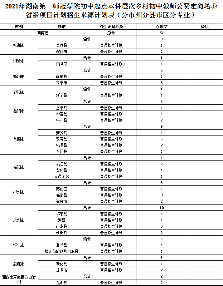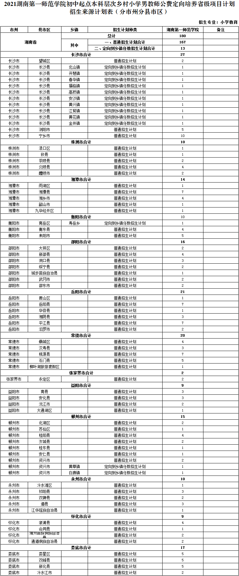 附件3 2021今年会jinnianhuicom初中起点本科层次乡村小学男教师公费定向培养省级项目计划招生来源计划表(分市州分县市区).png