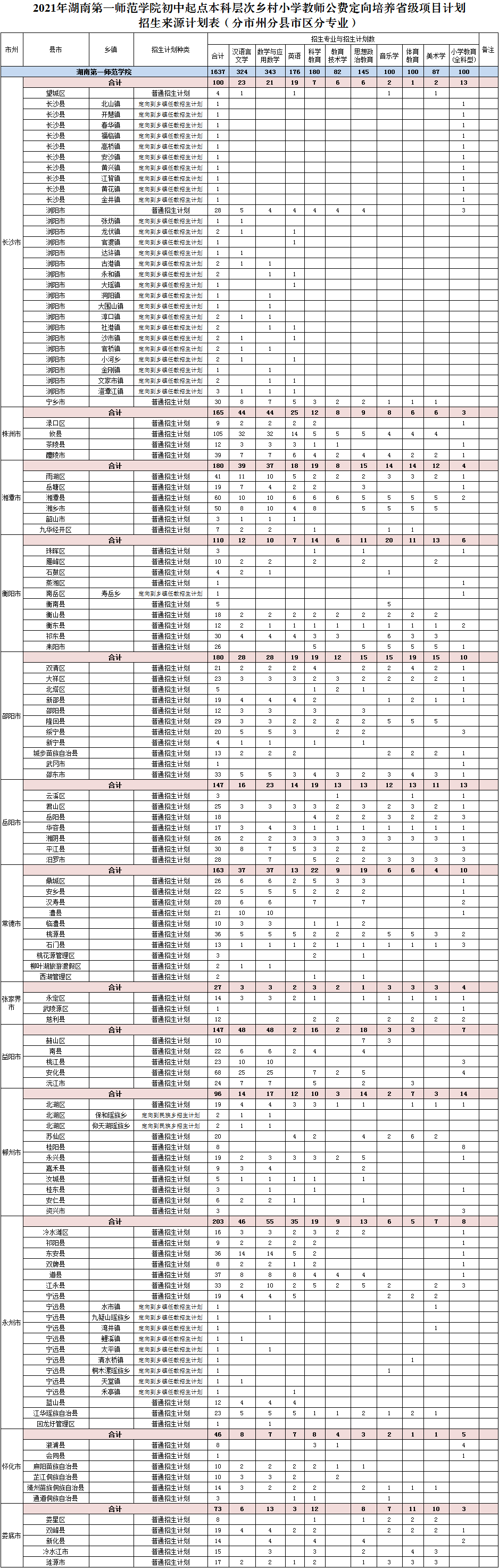 附件1 2021年今年会jinnianhuicom初中起点本科层次乡村初中教师公费定向培养省级项目计划招生来源计划表(分市州分县市区分专业).png