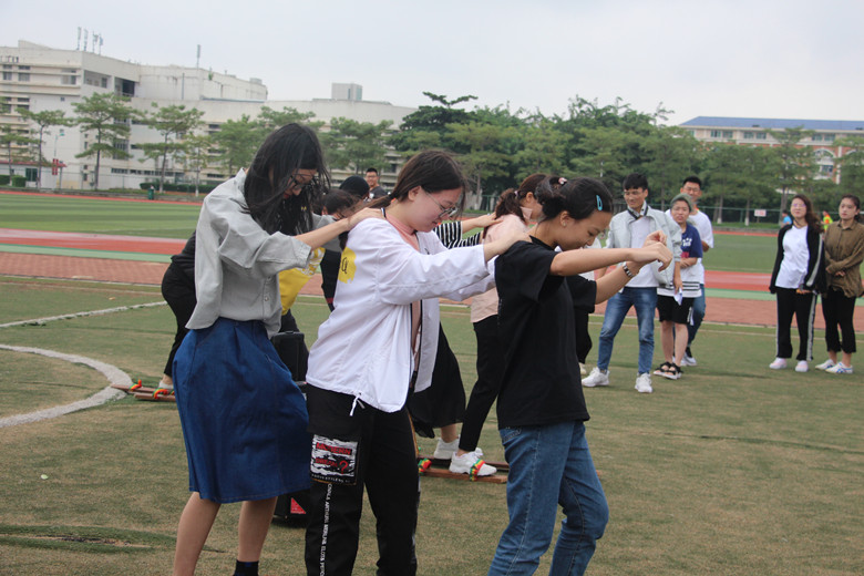 在“无敌风火轮“与”同心协力”游戏环节,各个小组又细分成两个小队,分别乘着无敌风火轮和踏着同心协力踏板与其他队伍进行比拼。各个小组齐心协力,在默契的配合下,乘着风火轮、踏着踏板全速向终点前进。即使在游戏过程中,由于失误,一些小队的速度慢了下来,但他们相互打气,最终完成了挑战。接着进行的游戏环节是趣味游戏“袋鼠跳”。参赛的队员们飞速进入麻袋,连跳带跑地照着另一端奔去。队员们采用不同的方法,有的稳中求进,有的奋力冲刺,努力冲向目的地。