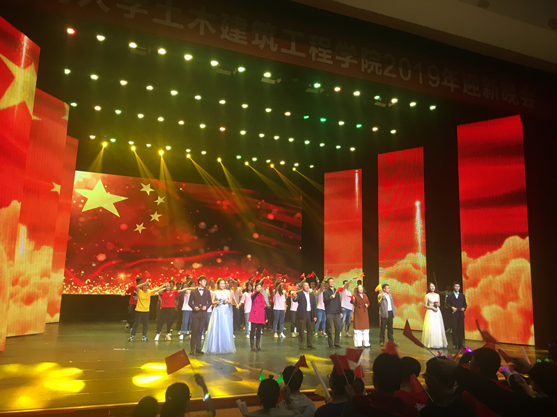 //www.hainanu.edu.cn 晚会最后,领导、嘉宾和全场观众一起合唱《我和我的祖国》,共同唱响对祖国的美好祝福!//www.hainanu.edu.cn 测绘建楼,土建学子耀星光;再建新高,土建学子谱华章。学院2019年迎新晚会圆满落幕,晚会主题鲜明,积极向上,承载了土建学子对祖国、对学校、对学院的美好祝愿,表达了学院全体师生在新的一年里,不忘初心,砥砺前行,和祖国同奋进、同海大共成长的热情与激情。//www.hainanu.edu.cn