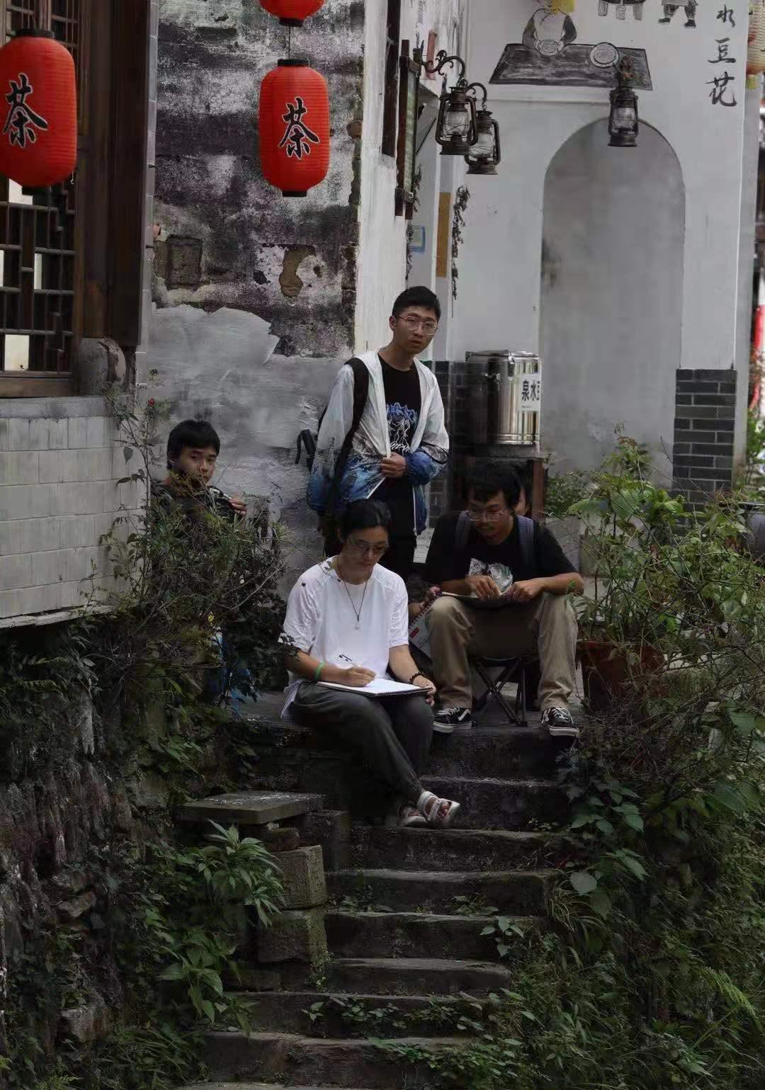晓起村的清晨,在流水潺潺的小河边描绘古建筑,这段师生共同游学进步的时光将成为学生时代珍贵美好的回忆。