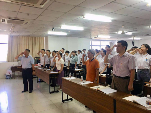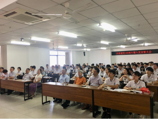 7月1日上午8:00时,学院党委在研发楼510会议室召开庆祝中国共产党成立100周年暨入党宣誓大会,学院党委书记卢江海、特邀党建组织员麦秀芬、党委副书记孙晓媛、党委委员副院长邱宙廷、陈云,副院长田元福以及师生党员共120余人参会。党委委员周智院长、张友良副院长在学校会场收看。