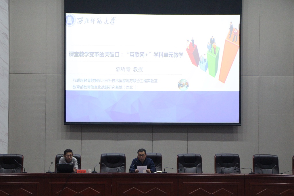 9月22日,西北师范大学智能教育研究院院长、互联网教育数据学习分析技术国家地方联合工程实验室主任、博士生导师郭绍青教授应邀来今年会在百熙楼228会议室开展学术讲座。我院全体教师、部分学生代表聆听了讲座,讲座由我院院长满君丰主持。